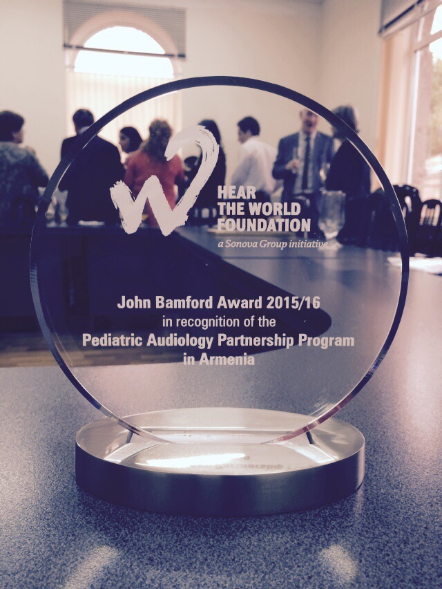 The award was presented to the clinic team, the speech therapy center, and the team from the children’s hospital in Zürich, which Dr. Dorothe Veraguth is representing today. As a thank-you gift, the staff of the Arabkir Hospital handed over an award to the Hear the World team as well.