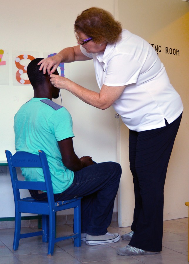 Earlier this week, the team agreed that we were here to work (and we have!). In addition to testing for hearing loss, fitting, and follow-up of the children at the Haiti Deaf Academy, we were compelled to do more than that, and we provided other services for other at-risk groups for hearing loss, as time permitted. One of these extra projects came when we were invited to do hearing screenings for students of The Respire Haiti Christian School.